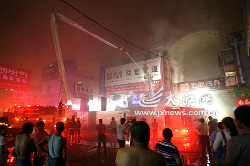 來自南昌市消防部門的信息顯示,接到報警后,桃花中隊、建設路中隊、特勤二中隊、洪都中隊、淵明中隊和保障大隊均立即趕赴現場救援,一共出動了10輛消防車。現場消防官兵介紹,火場內沒有人員被困,最大的困難在于濃煙熏人,堆積的管材比較多,一時難以進入內部將火完全撲滅...許久,大火基本被控制,但仍有濃煙冒出。