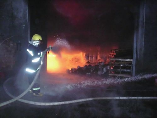 消防車廠家【m.buy24online.com】新聞資訊:昨天凌晨2時許,衙前鎮同富村新益佳紡織廠倉庫發生火災。接警后,中紡城消防隊和恒逸消防隊在20分鐘后同時到達現場滅火。之后,市北消防中隊、開氏消防隊、宏峰消防隊、青云消防隊、益利隆消防隊、瓜瀝鎮消防隊、益農鎮消防隊等增援消防隊,相繼到達現場。12輛消防車共同參加滅火,分別從四周進行撲救,經過消防隊員3個多小時的努力,到早上5時30分左右大火才被完全撲滅。初步查明,此次火災是由于倉庫旁邊的空氣壓縮機漏油,電線短路將漏油處點燃導致。此次火災的過火面積有1000多平方米,倉庫內所有紡機和化纖成品被燒毀。